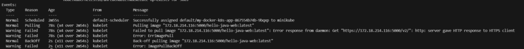 Failed to pull image “172.18.214.116:5000/hello-java-web:latest”: Error response from daemon: Get “https://172.18.214.116:5000/v2/”:
